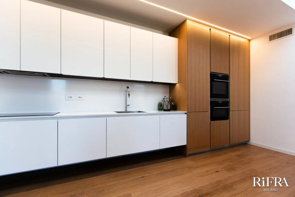 DESIGN WOHNUNG MIT ABGEHÄNGTER RIFRA KÜCHE IN MAILAND