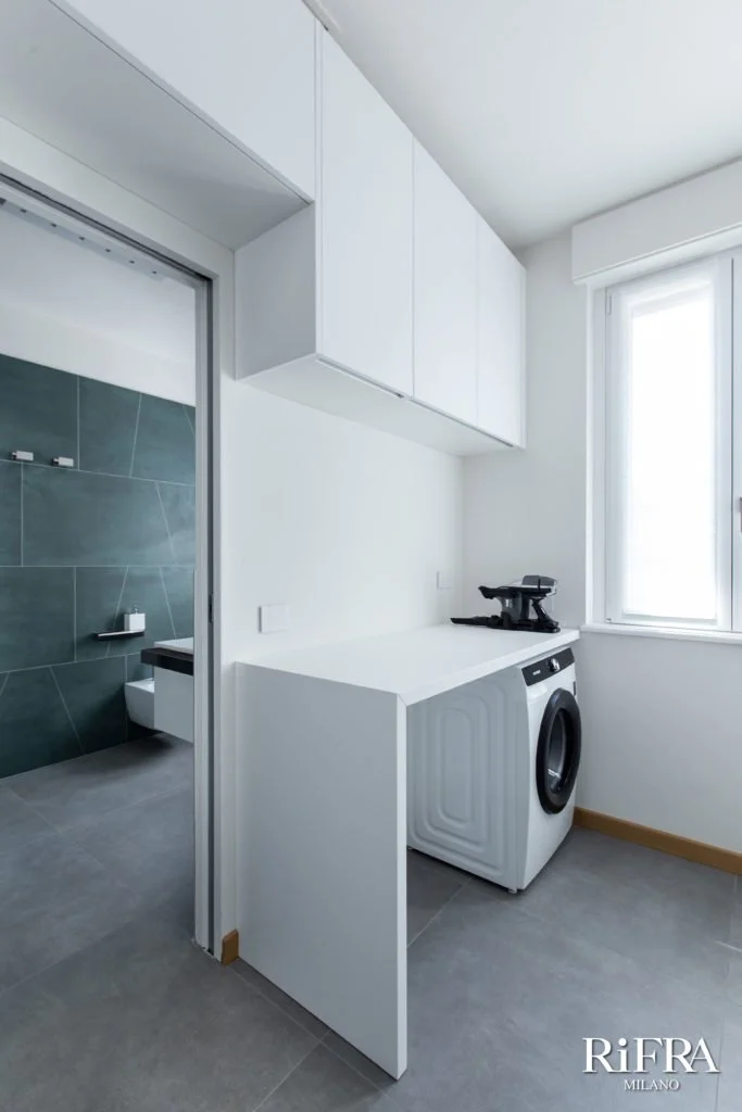 Nach der Bestätigung des Projekts haben unsere Techniker die Räume ausgemessen, die Produktionszeichnungen erstellt, und die Küche, die Bäder und die Schränke in unserer modernen Fabrik in Brianza (Italien) hergestellt. ( Klicken Sie auf diesen Link, um ein Video zu sehen, in dem wir uns vorstellen, wie wir arbeiten und wer wir sind). Letztlich wurden die Möbel geliefert und von unseren Mitarbeitern montiert.