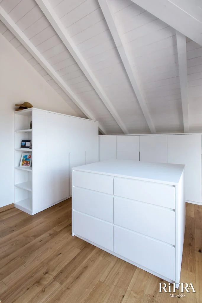 Wir befinden uns in Italien, in der Nähe des Comer Sees, wo Alessandra, die Eigentümerin dieses Hauses, eine komplette Renovierung durchgeführt hat. Dabei wurden die Küche, die Bäder und der begehbare Kleiderschrank mit den Vorschlägen von RiFRA ausgestattet.