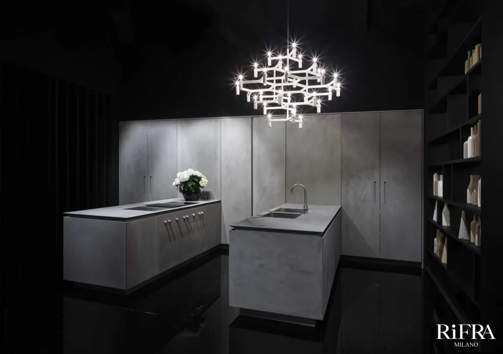 Wie wir in vorherigen Projekten gesehen haben, sind die idealen RiFRA-Küchen für die Doppelinselkonfiguration die Kollektionen ONE und FLY.