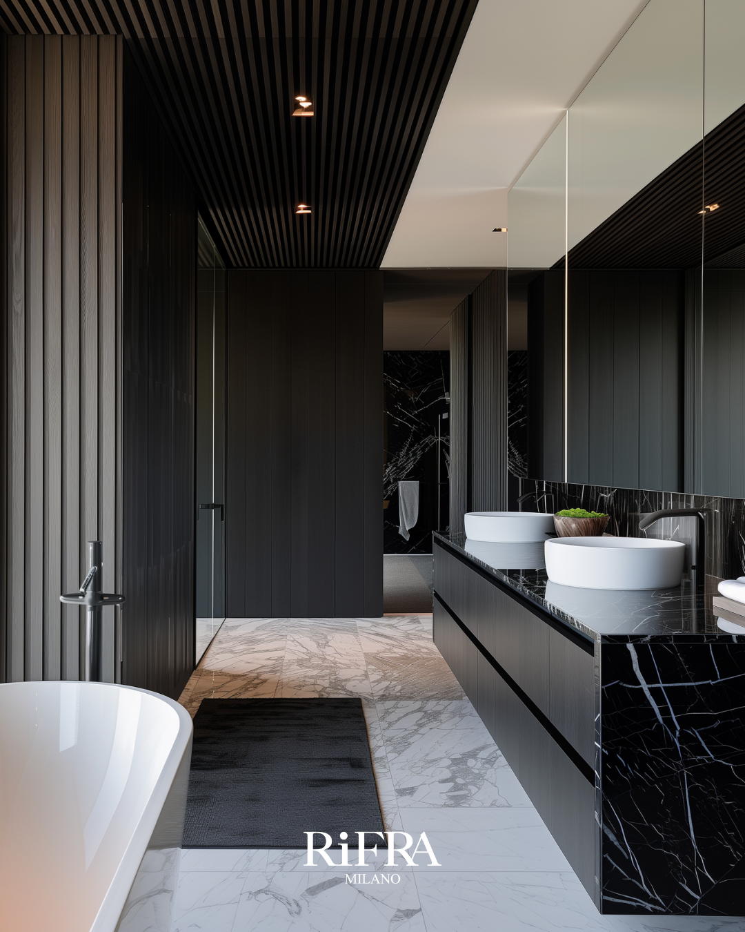 RiFRA Bäder: Eine Wohlfühloase, in der Marmordetails und feine Verarbeitungen eine Atmosphäre reinster Entspannung schaffen. Die Liebe zum Design spiegelt unser Engagement wider,ein Erlebnis ohne Gleichen zu bieten, um den Tag voller Komfort zu beginnen und zu beenden.