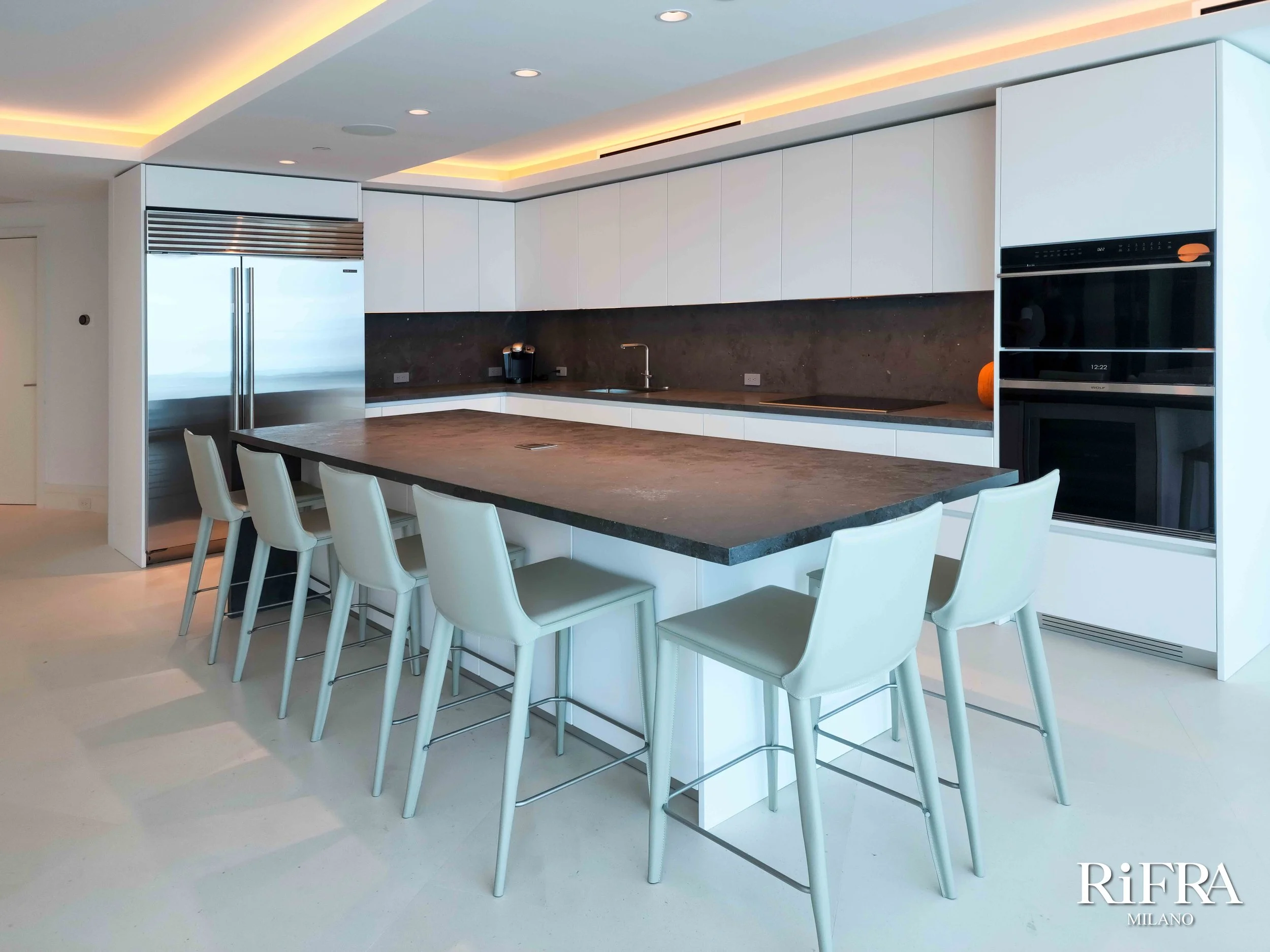 Die LINE-Küche von RiFRA ist der Protagonist einer Design-Apartment -Renovierung, die in einem der bekanntesten Wolkenkratzer in Miami Beach stattfand.